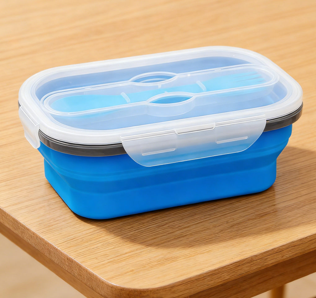 800ml Collapsible Silicone Lunch Box with Leakproof Lid and Spoon
