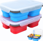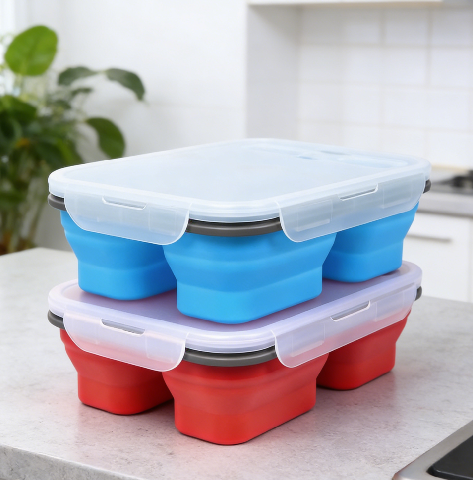 Large Collapsible Silicone Bento Box Set, 3 Compartments Each