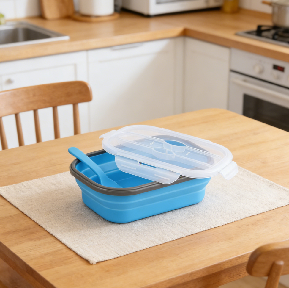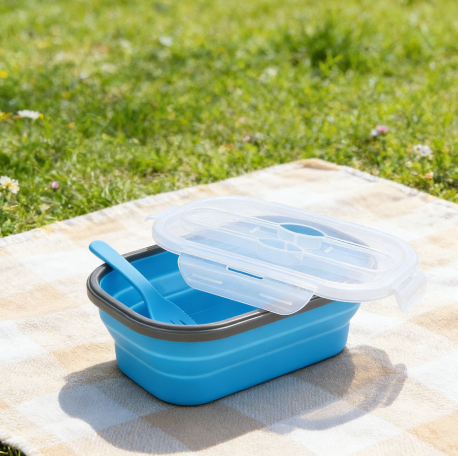 Silicone Foldable Lunch Box with Retractable Dining Fork
