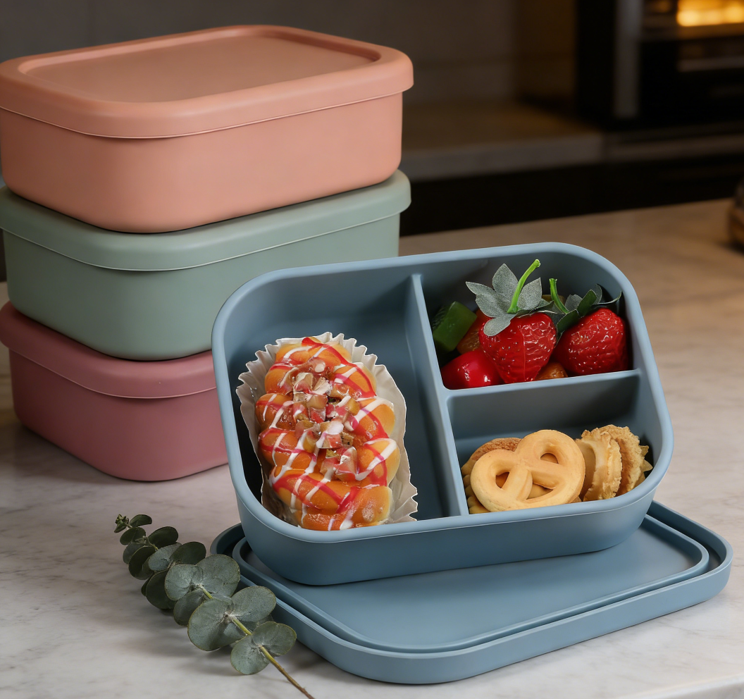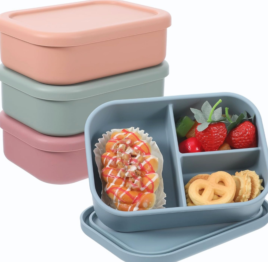9-Pack Stackable 3-Compartment Silicone Lunch Container
