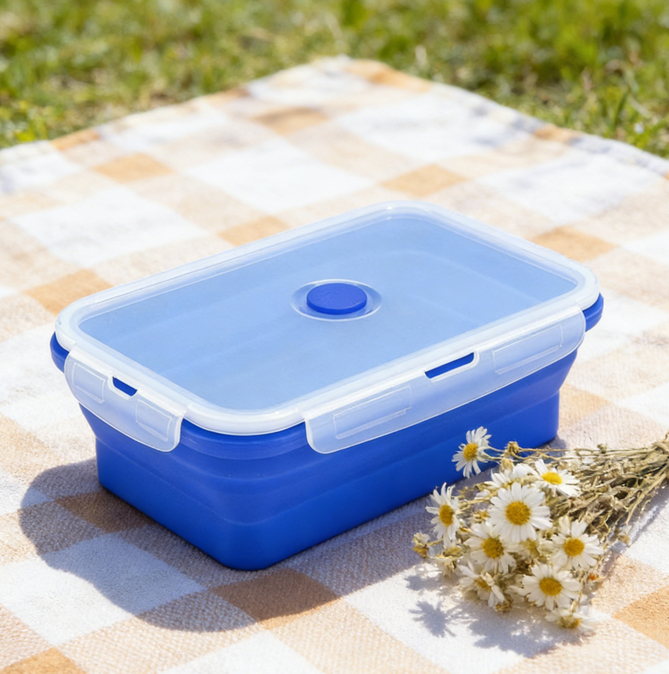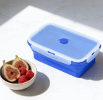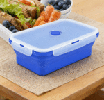This foldable silicone container is suitable for meal prep, snacks, and leftovers.