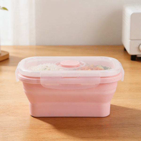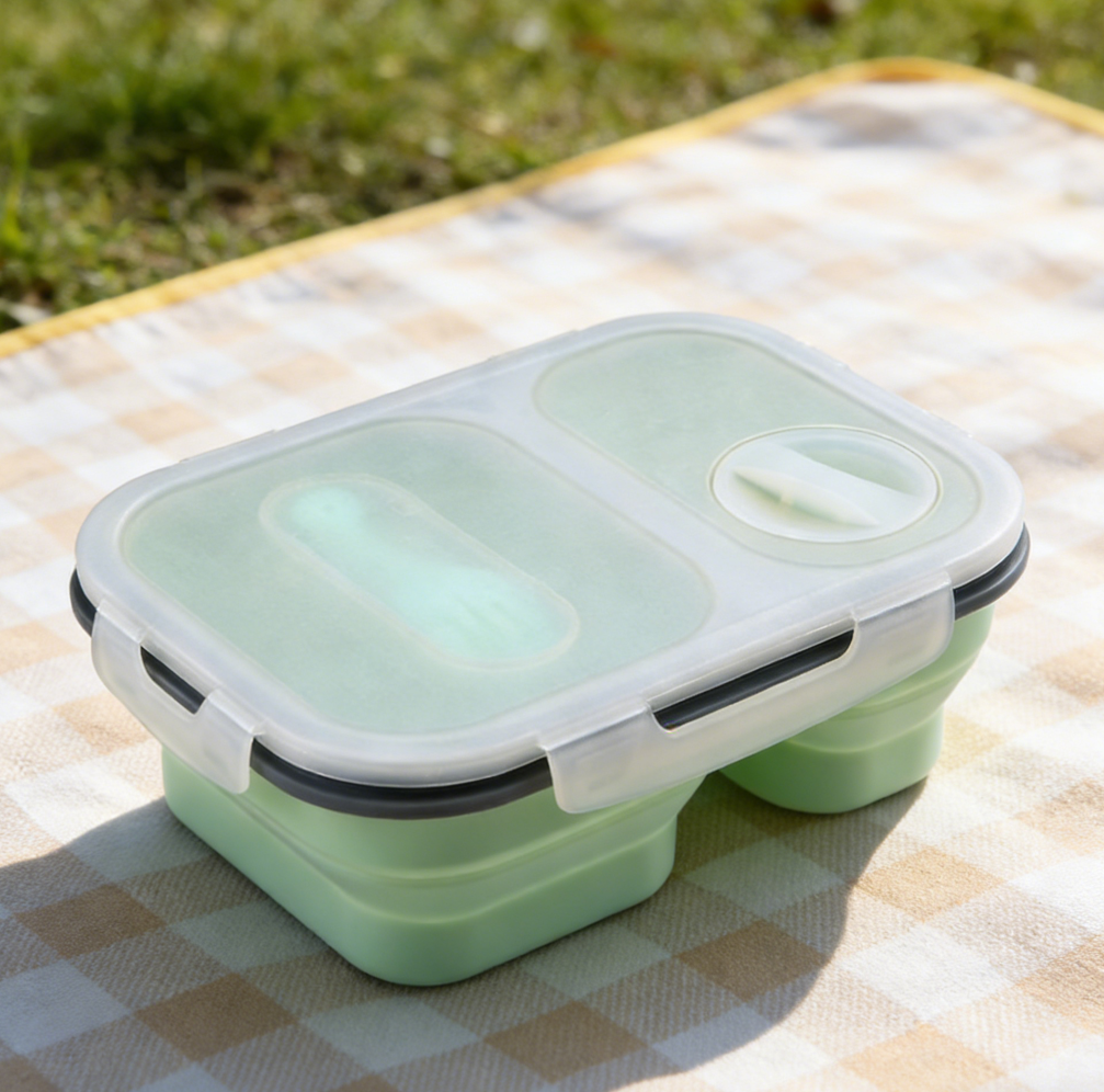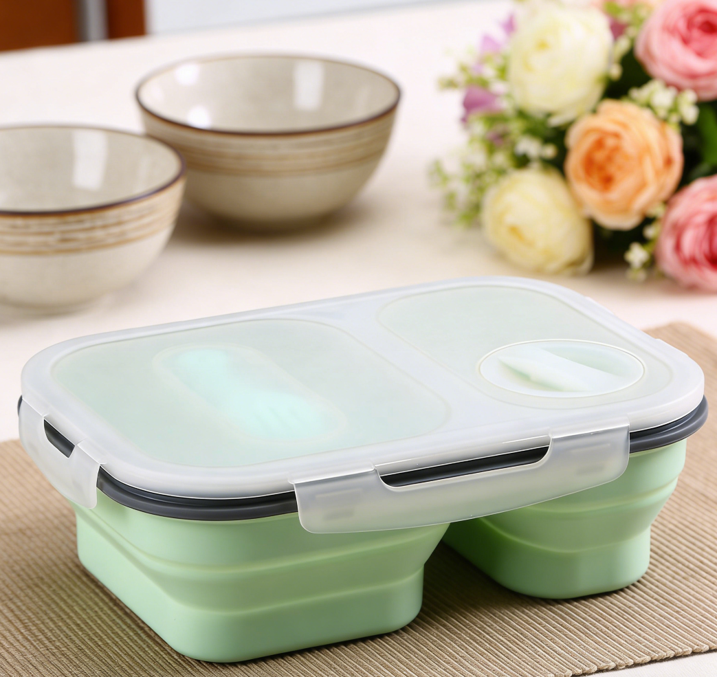 Rectangular Silicone Foldable Lunch Box with Airtight Compartment Lid